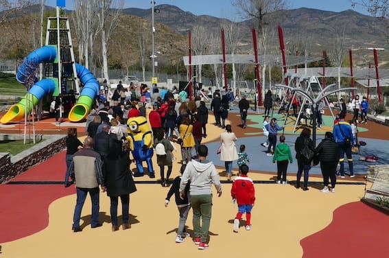 More than 11,000 square meters, 1.2 million of shared investment between the City Council of Macael and the Provincial Council of Almeria, will allow families to enjoy lifelong games that are interspersed with attractions rarely seen. Adventure games such as a thirty-meter double zip line, unique in the province. Children’s area with attractions for small children, musical games, games adapted for people with special needs, an inflatable bed of nine meters by eleven, climbing area, a bio-healthy park, picnic area, bar, soccer field. Age-specific play areas with the planting of more than 100 trees in addition to those already existing in the area, where you can listen to the sound of the different birds that nest on the premises.