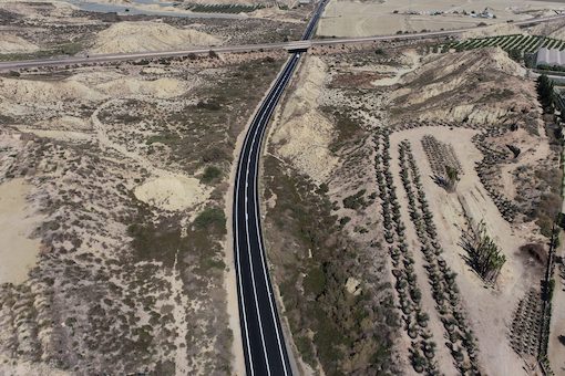 Specifically, work has been carried out on a section which runs from kilometre point 0+000 to 3+350 and which is included in the intersection with the AL-8104 road, the access road to Palomares, owned by the Almeria Provincial Council. A total of 5,152 tonnes of bituminous concrete AC22 surfacing were used.