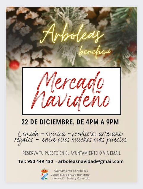 This coming Friday 22nd December, the Arboleas Town Council has organised a charity Christmas market.