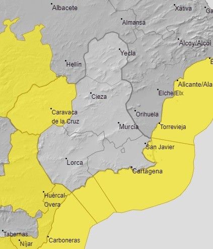 The State Meteorological Agency (Aemet) has activated the yellow warning, which means risk, for wind gusts of up to 70 kilometres per hour from Wednesday in the northwest of the Region of Murcia.