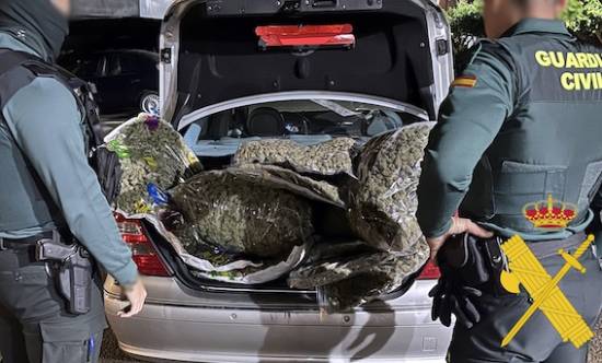 The driver tried to get out of the vehicle, disobeying at all times the orders of the agents and resisting with a high degree of aggression towards them. After his arrest, the Guardia Civil examined the vehicle, in whose boot they intercepted nearly 20 kilos of large-calibre marijuana buds in a state of optimal desiccation for consumption. They were stored in large plastic bags for subsequent distribution and sale.