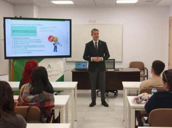 The Andalusian Regional Government’s Centre for the Prevention of Occupational Risks in Almeria, which belongs to the Delegation of Employment, Enterprise and Self-Employment, held an open day in which the regional delegate, Amós García Hueso, accompanied students from a Higher Level Vocational Training course in the Prevention of Occupational Risks at the Los Ángeles Secondary School in the capital, as well as the mutual insurance companies that collaborate with the Social Security in the province.