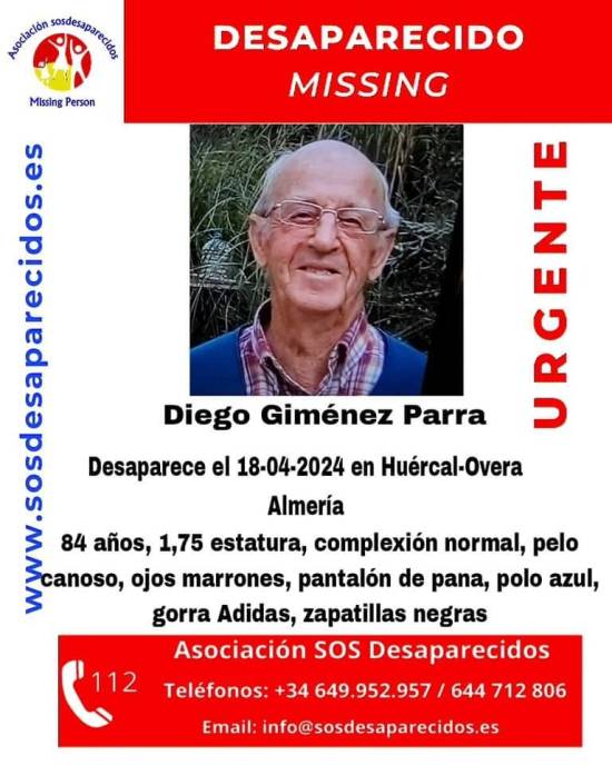 «He is a local man, from a hamlet with a population of around 700 inhabitants. He is 84 years old and deaf and dumb. He is well known to everyone and since his disappearance, people and administrations have made an enormous effort which has been unsuccessful. Now the search continues along other lines of investigation. We have asked those owners who have closed farmhouses or uninhabited houses to take a look around, in case Diego had sought refuge», asks the mayor of Huercal.